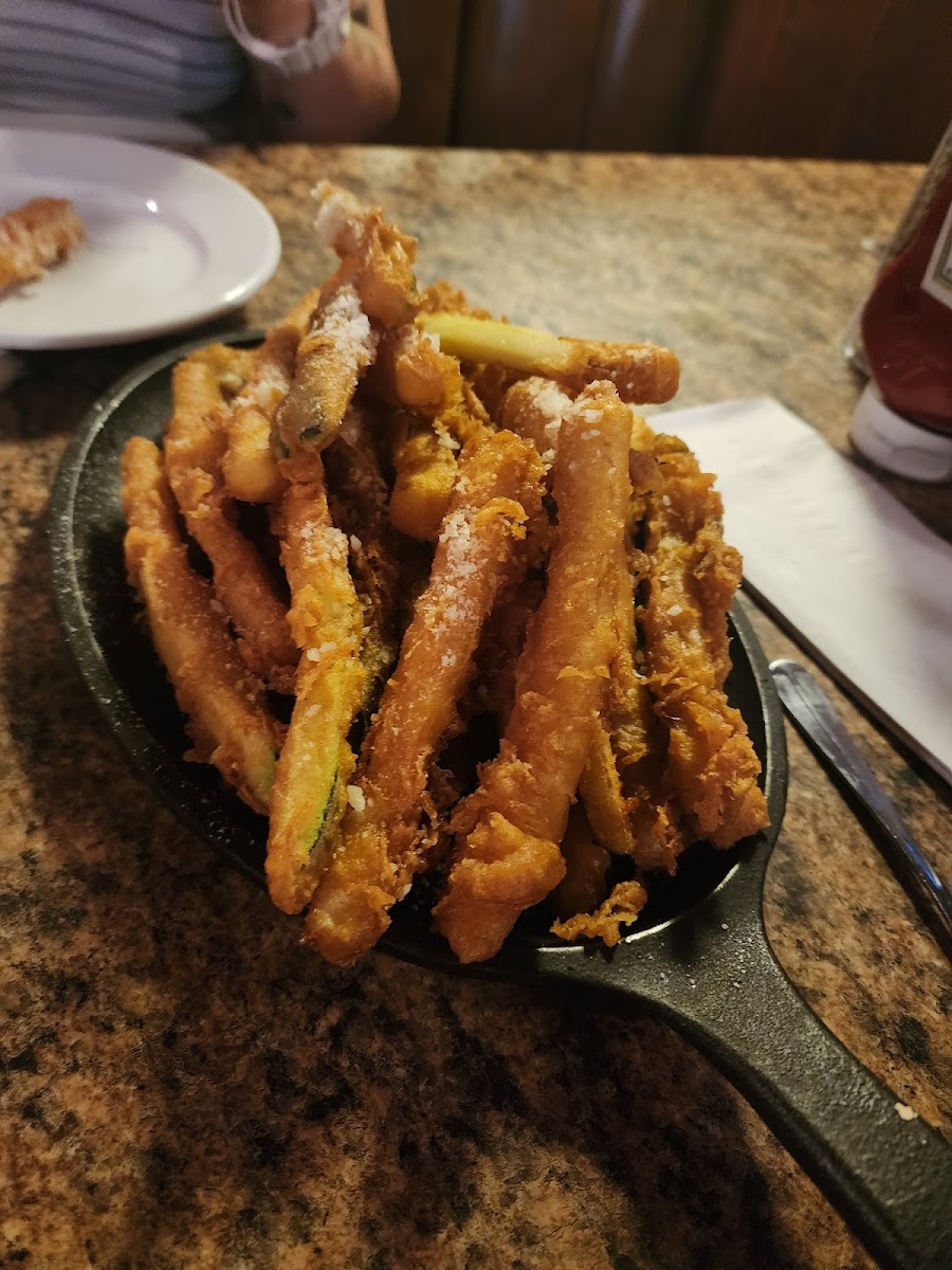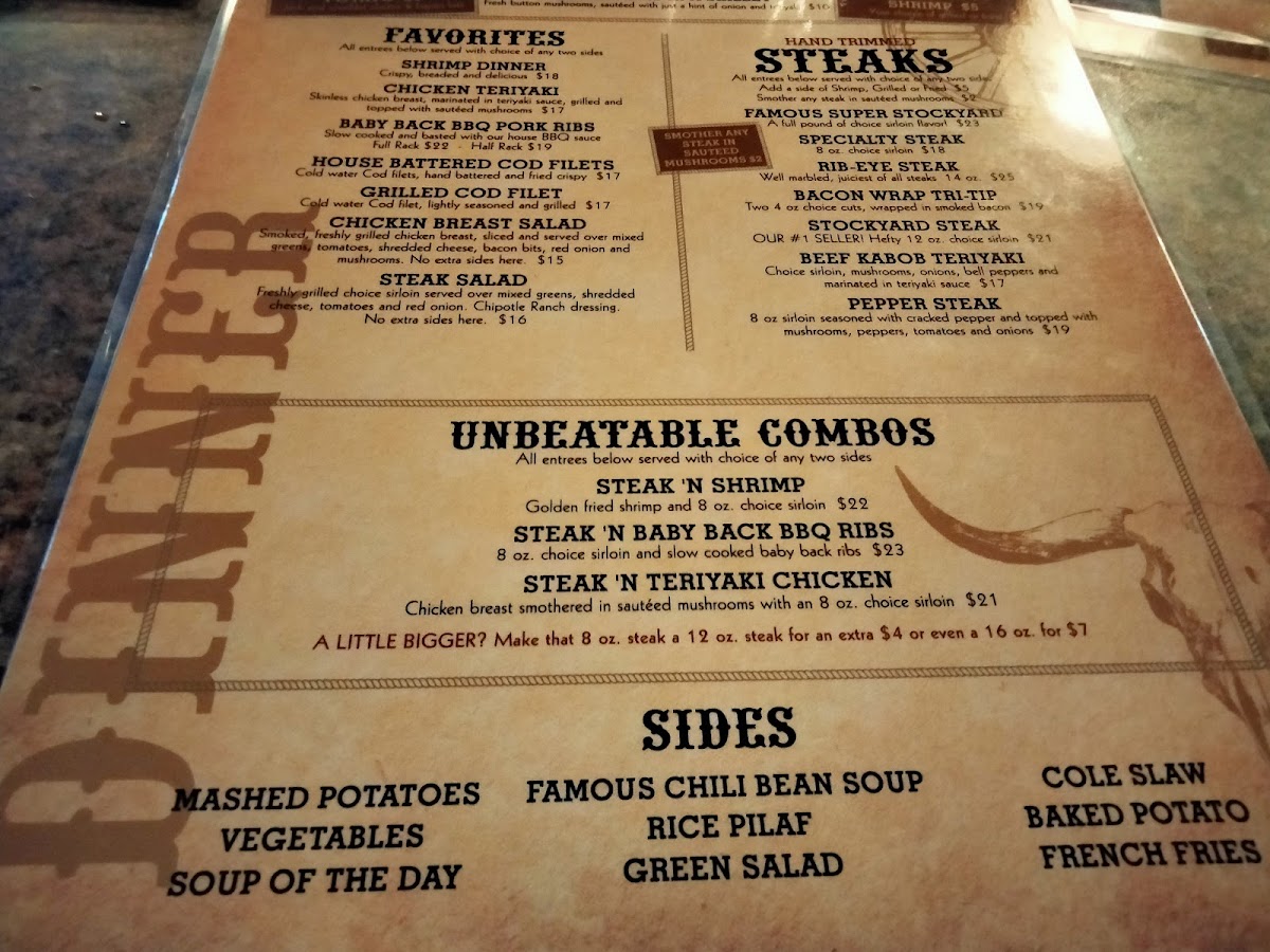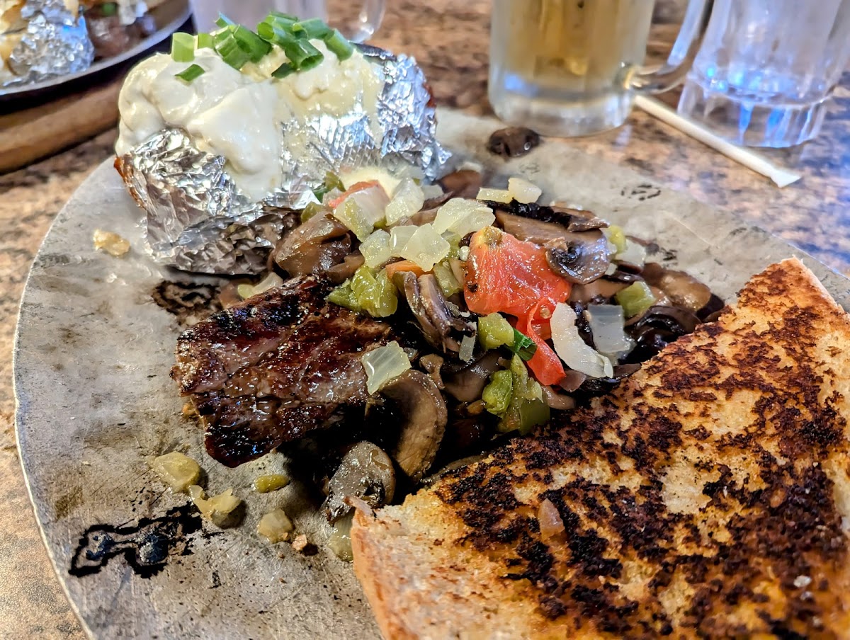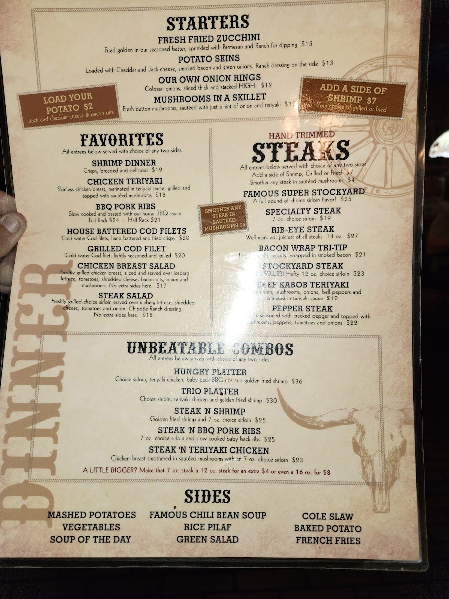 On the menu, you’ll find some mouth-watering starters such as the Fresh Fried Zucchini and Mushrooms in a Skillet, both of which promise delightful bites that ignite your taste buds. As you feast on these starters, the aroma of grilling meats fills the air, building anticipation for the main event — the perfectly seasoned steaks.